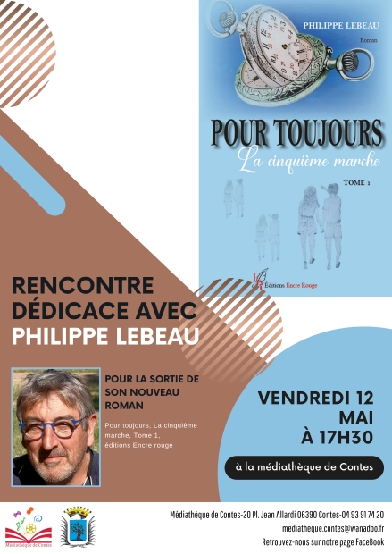 Le vendredi 12 mai, je vous propose de venir me rencontrer à la Médiathèque de CONTES (06) à 17h30 pour la présentation de mon nouveau roman « Pour Toujours Tome 1 – La cinquième marche » dont l’histoire se déroule principalement dans cette superbe commune de l’arrière-pays niçois.